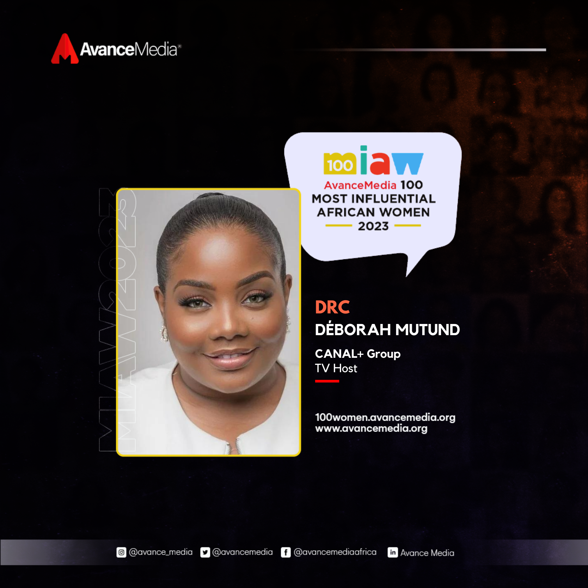 Déborah Mutund, an influential figure hailing from Kolwezi, Democratic Republic of Congo, has earned her place in Avance Media’s 2023 list of 100 Most Influential African Women. Renowned as an entrepreneur in the beauty sector, television host, public relations consultant, and international model, Déborah has left an indelible mark on the African entertainment and beauty landscape.