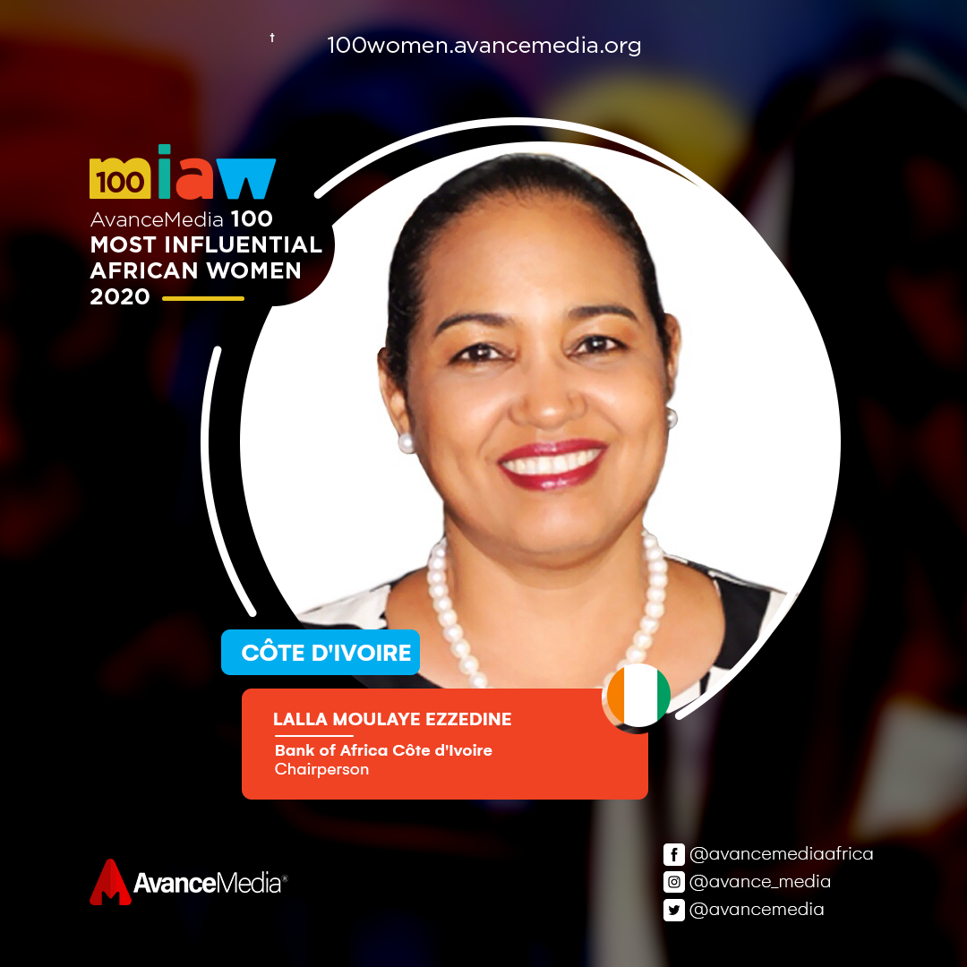 Lala Moulaye Ezzedine is the first woman to chair the board of directors of a bank in Côte d’Ivoire, after having been the first woman to manage a bank in the same country and is also the first to chair the Club des heads of African banks and credit institutions. She has been elevated since November 2012 to the rank of Knight of the National Order of Merit of the Republic of Côte d’Ivoire.